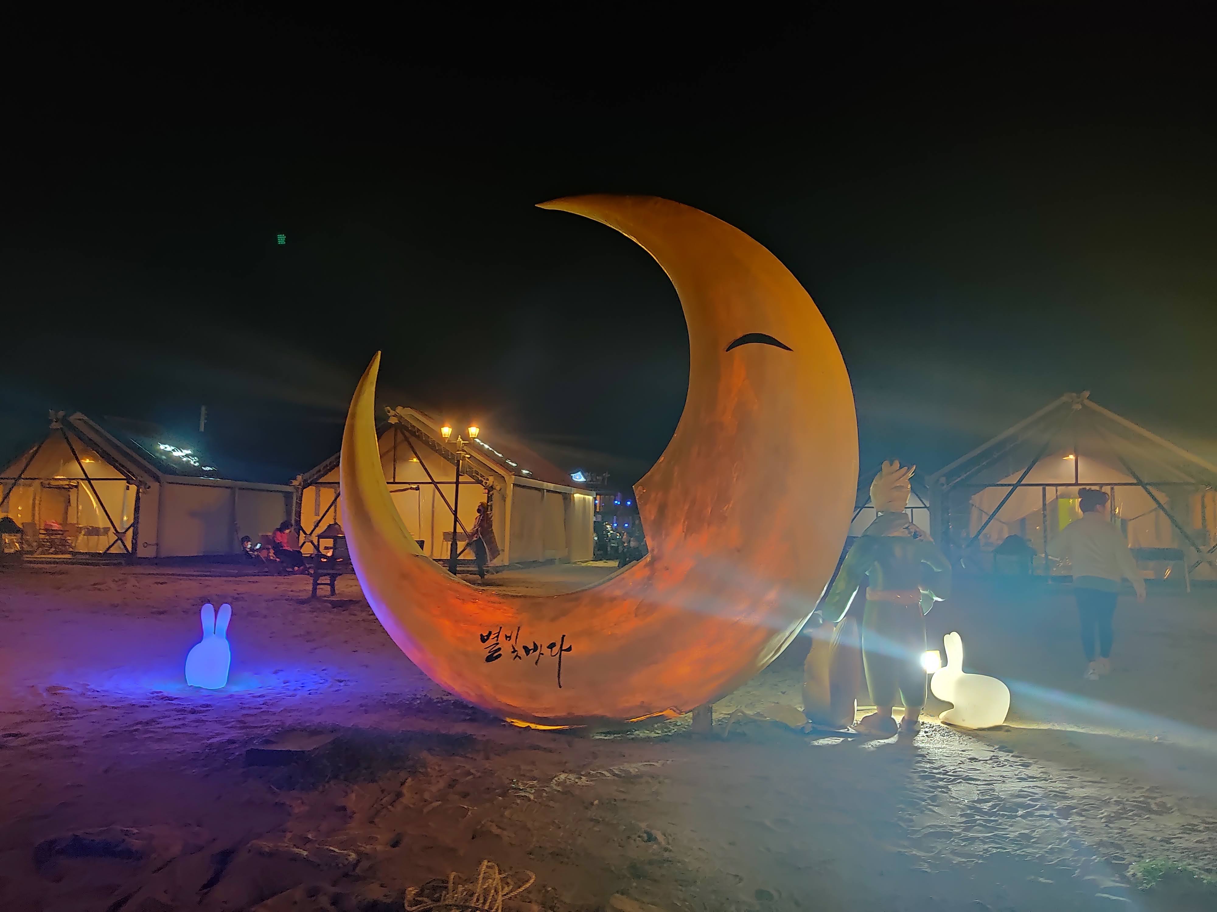 밤이 되면 바로 앞에 있는 별빛바다 글램핑장에서 예쁘게 조명을 켜줍니다.