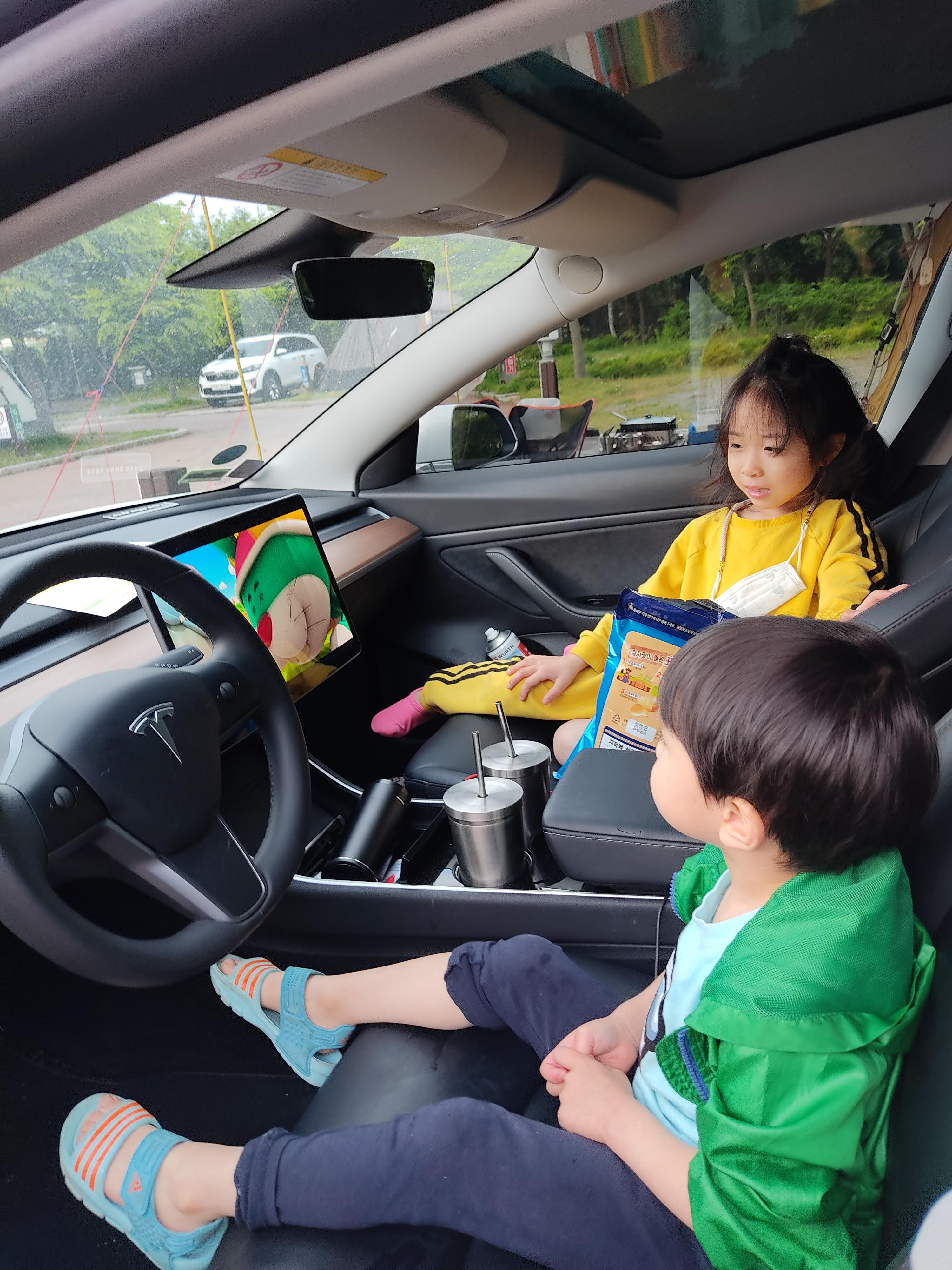 짐 내리는 기 아주 좋고 저처럼 테슬라 차주들은 캠핑 모드를 해놓고 아이들에게 넷플릭스를 보여주고 저녁 준비하면 아주 편하답니다! 아이들이 잠든 밤이면 영화 한 편 보기도 좋지요
