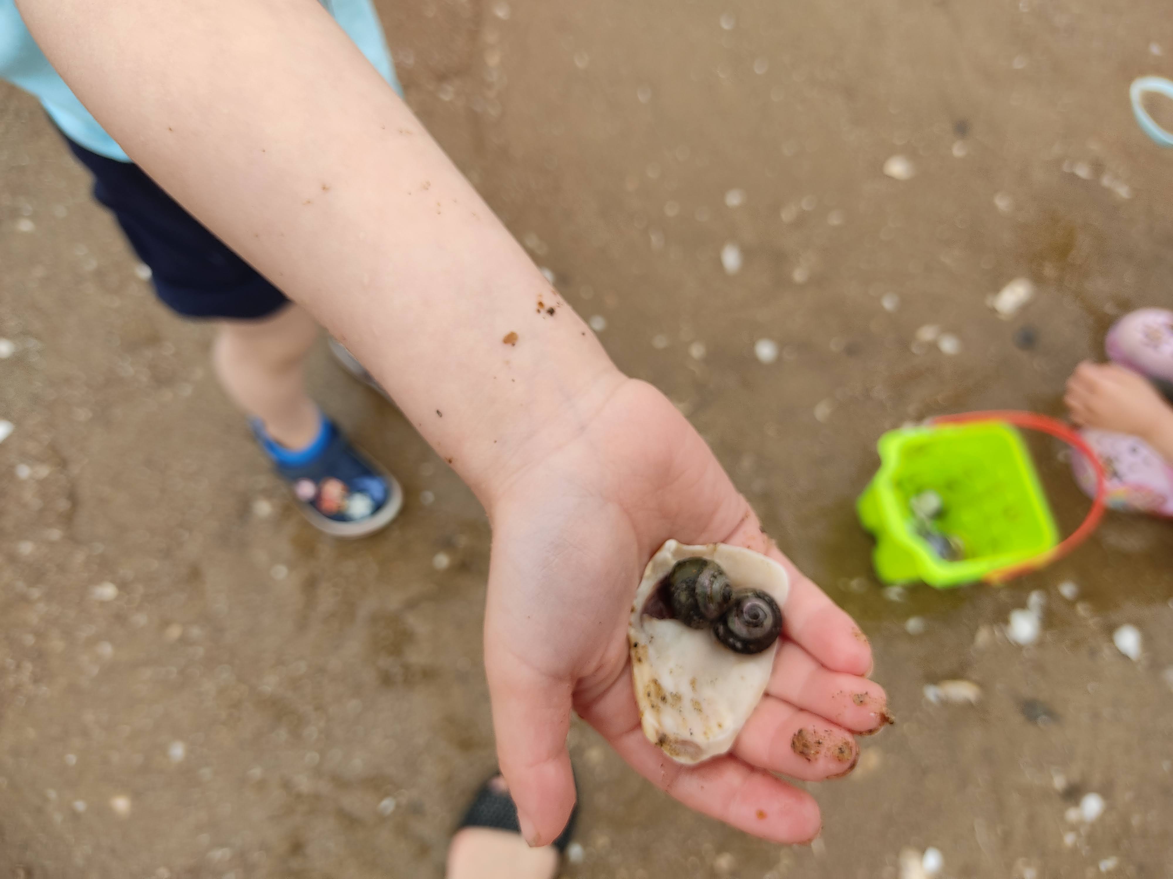 '엄마 이것 봐요 소라게예요!!' 아이들이 꺅꺅 좋아하며 바다 생물들을 탐구합니다.