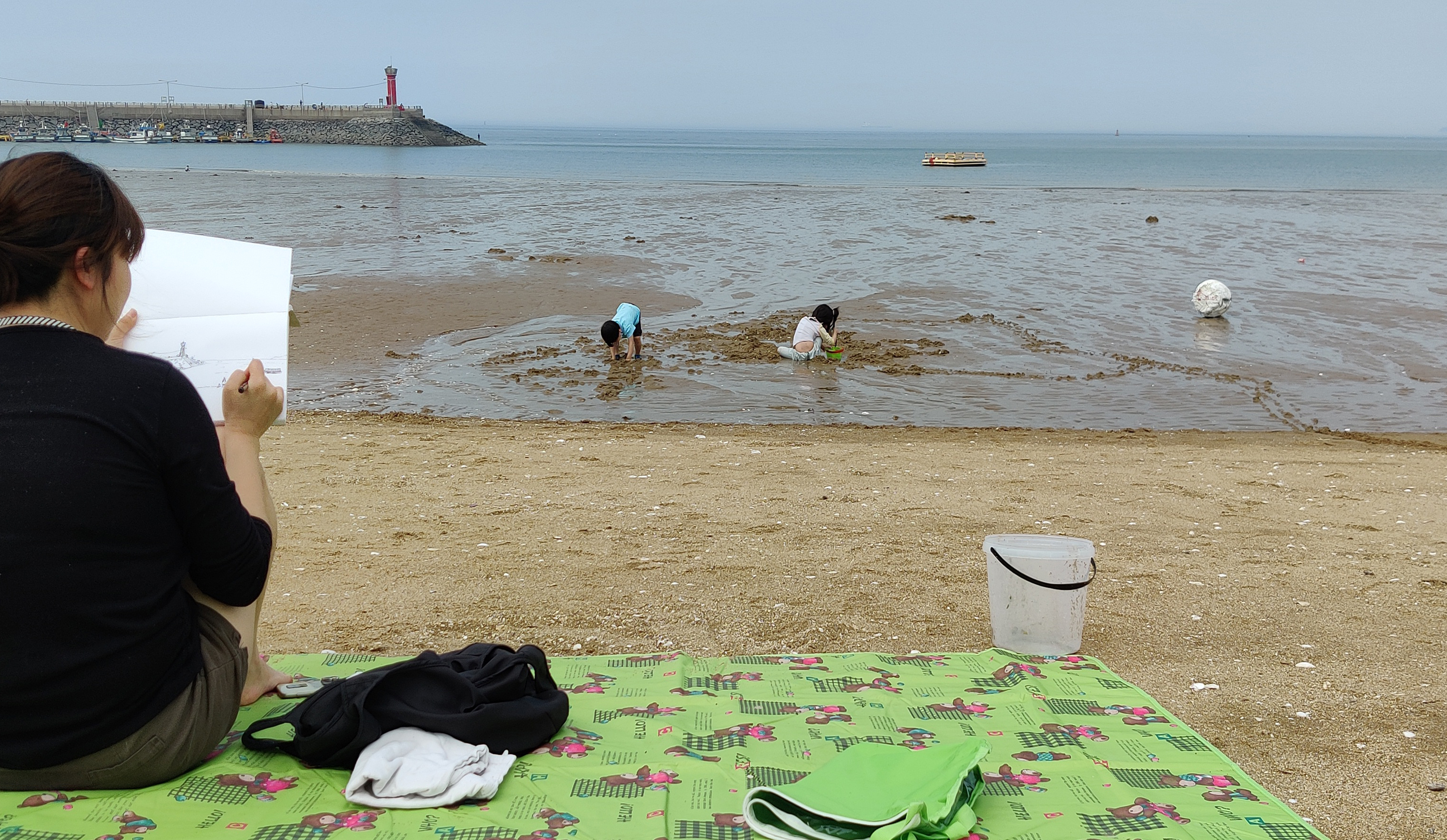 '엄마 이것 봐요 소라게예요!!' 아이들이 꺅꺅 좋아하며 바다 생물들을 탐구합니다.