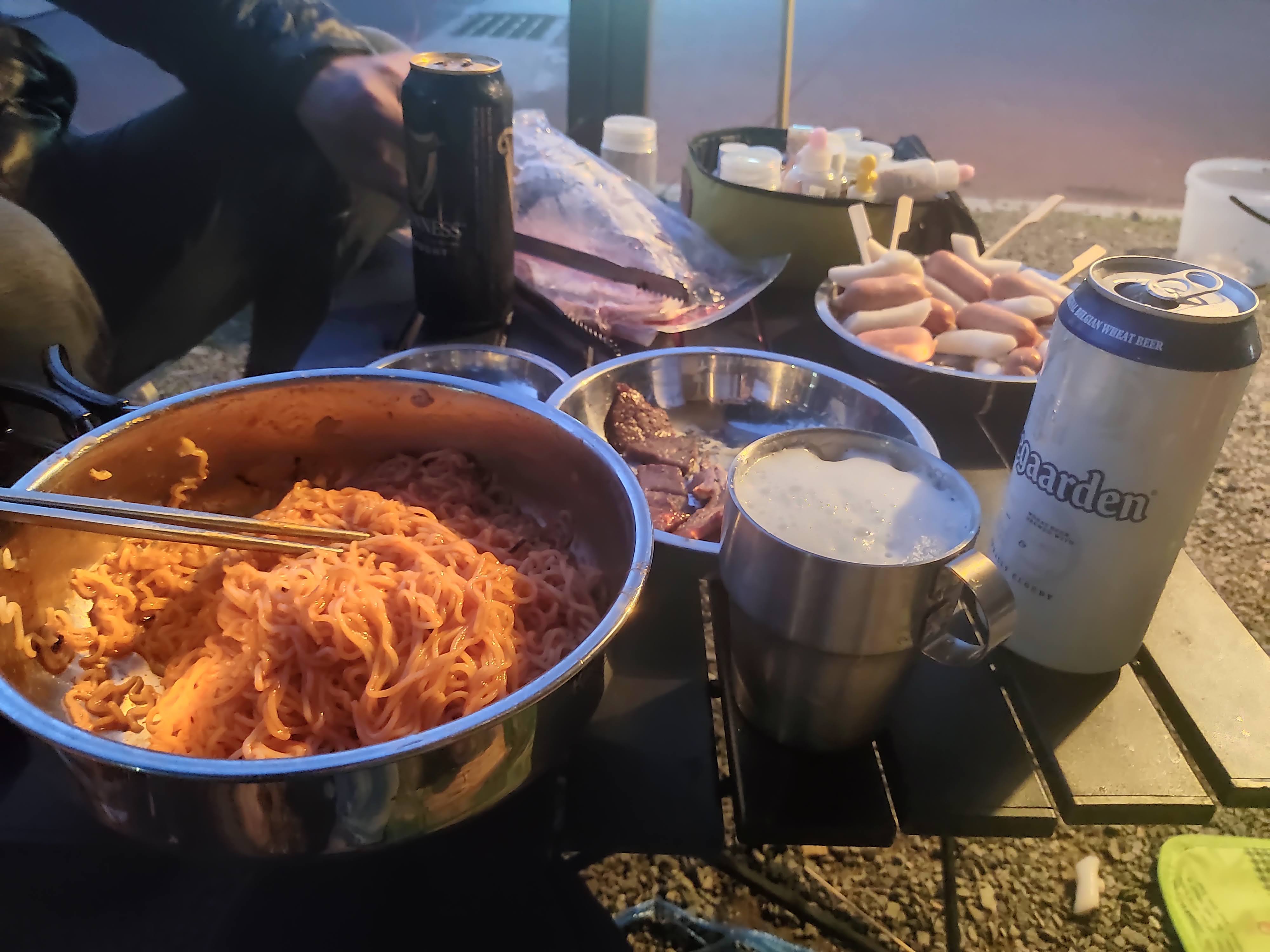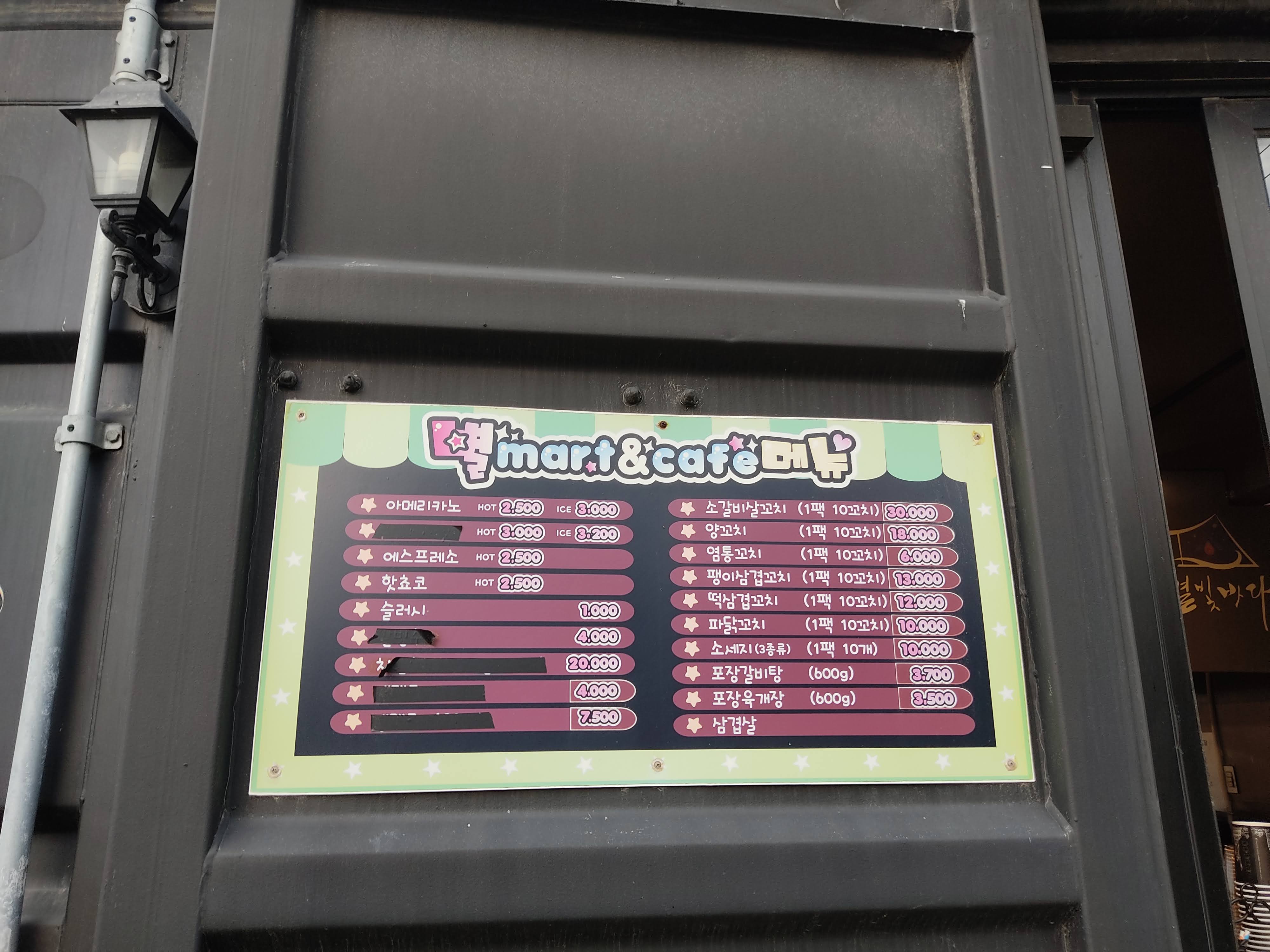 해변으로 가는 길로 가다 보면 별빛 바다라는 글램핑장이 나오는데 여기서 웬만한 장작, 식품, 그리고 커피까지 구입할 수 있어요. 하지만 장작 비싸고 (16,000원) 물 많이 먹었어 있었어요.
