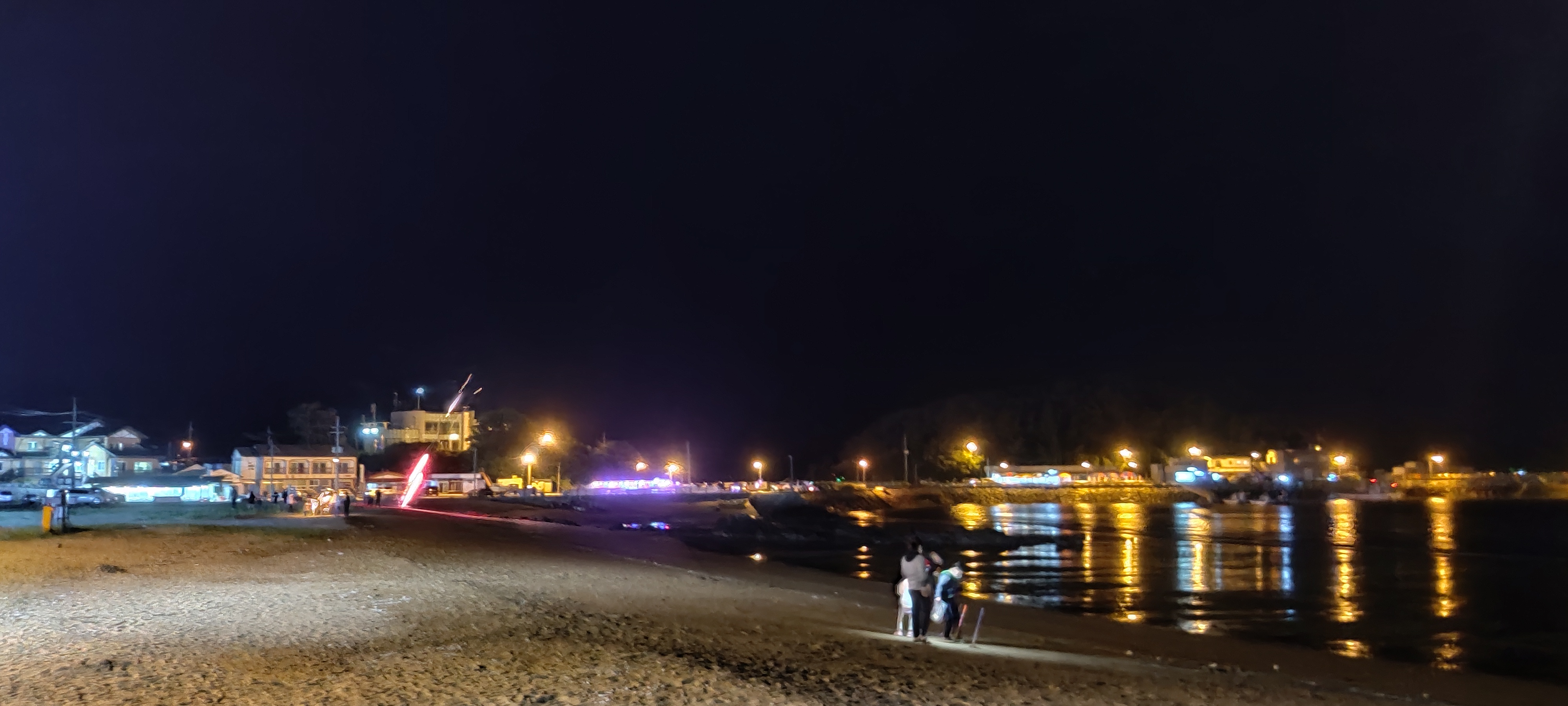 해변에 나와보니 사람들이 불꽃놀이를 하네요. 저는 준비를 못해서 가만히 구경합니다.