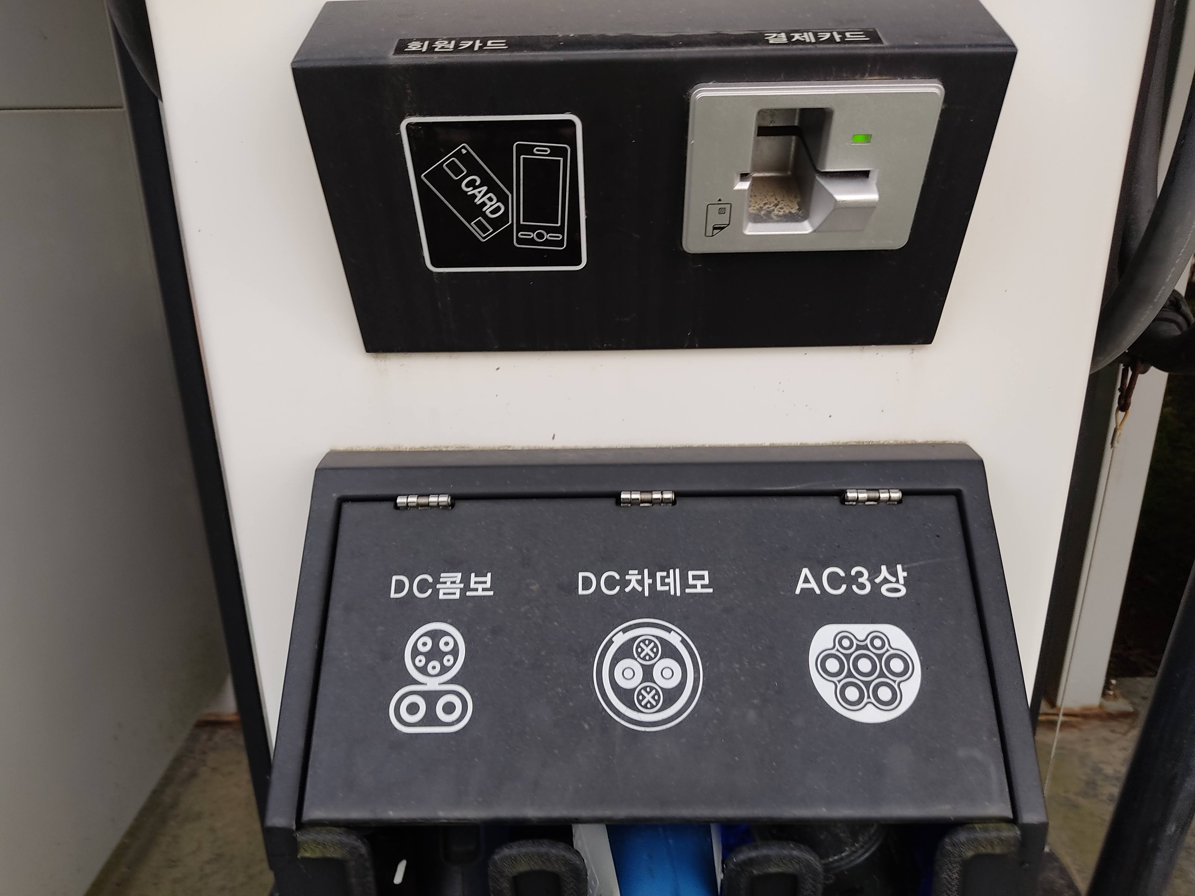 주차장엔 2개의 전기차 충전소가 있어요. (DC콤보, DC차데모, AC3상)