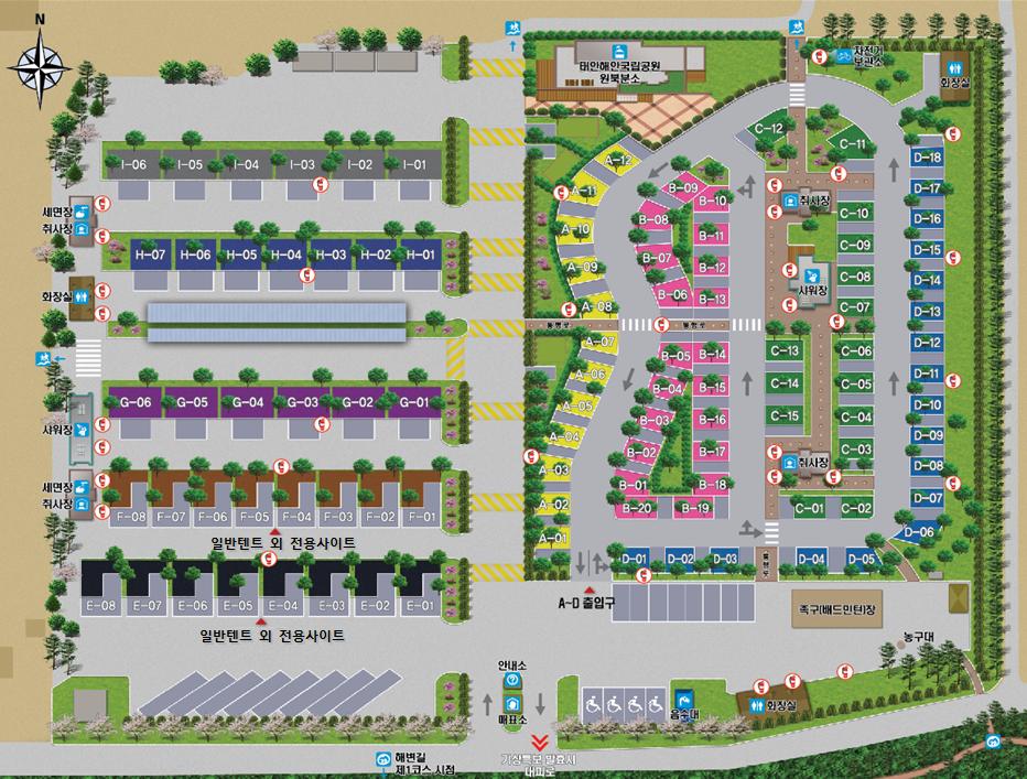 앞쪽으로 예쁜 학암포 해수욕장을 끼고있어 끼고 있으며 시설이 너무나 좋기에 야영장 중 가장 인기가 높은 야영장이에요. 특히나 시설관리가 ★★★★★ 별 다섯 개의 너무나도 완벽한 야영장입니다.