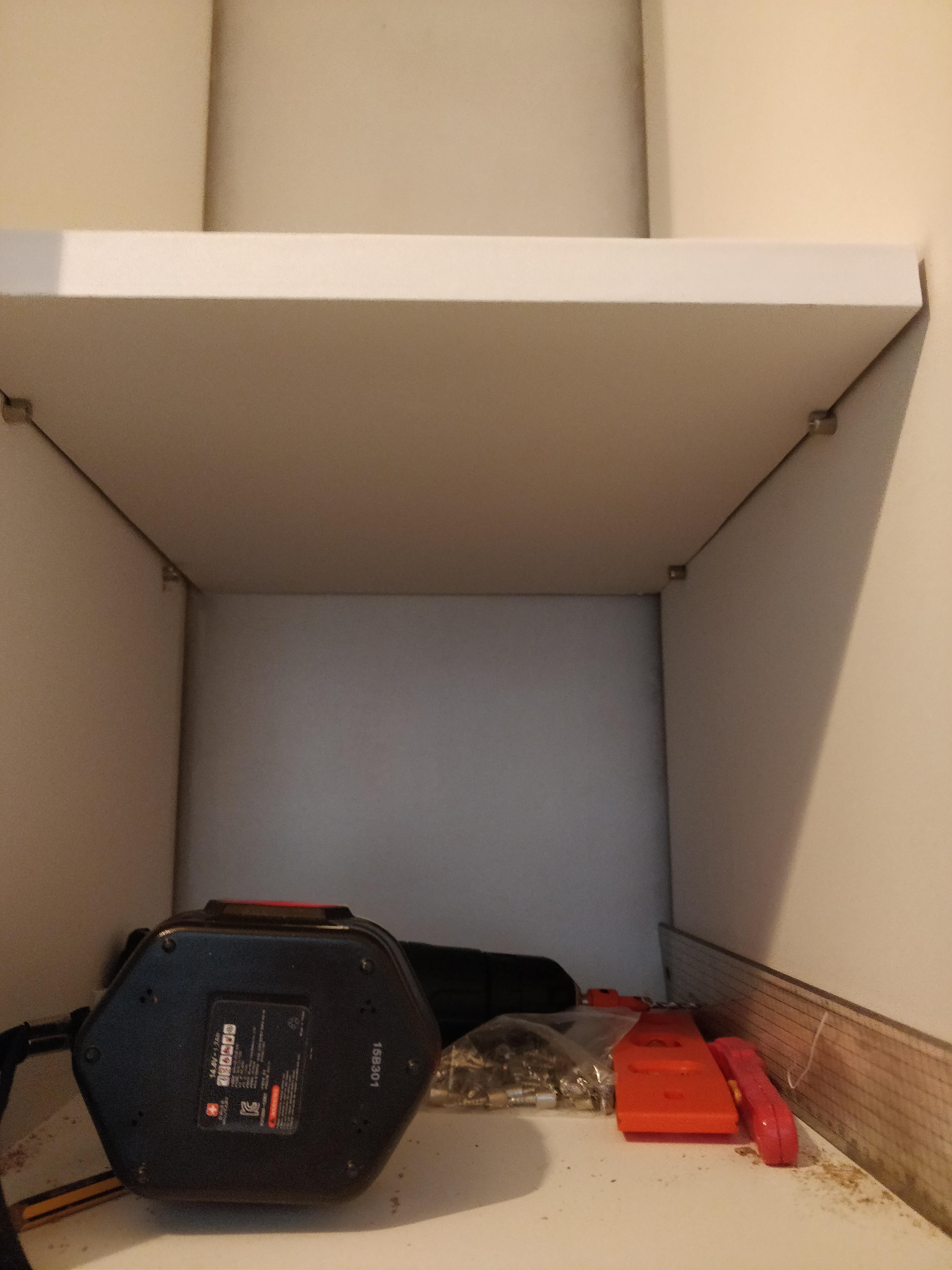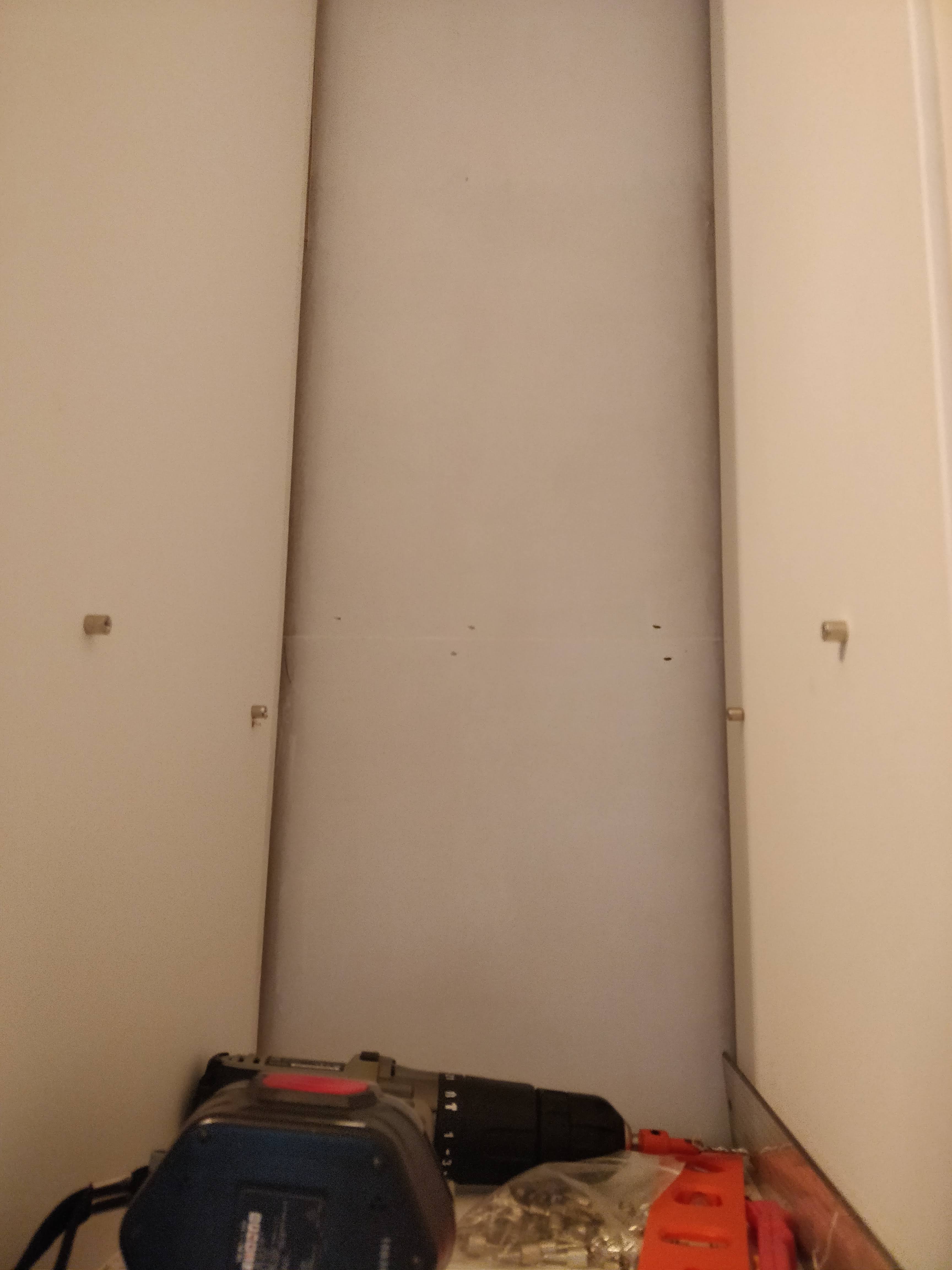 드릴로 길을 내주고 피스 다보를 설치해 줍니다! 원래는 작은 신발장의 선반이었을 pb판을 잘라 툭 올려줍니다.