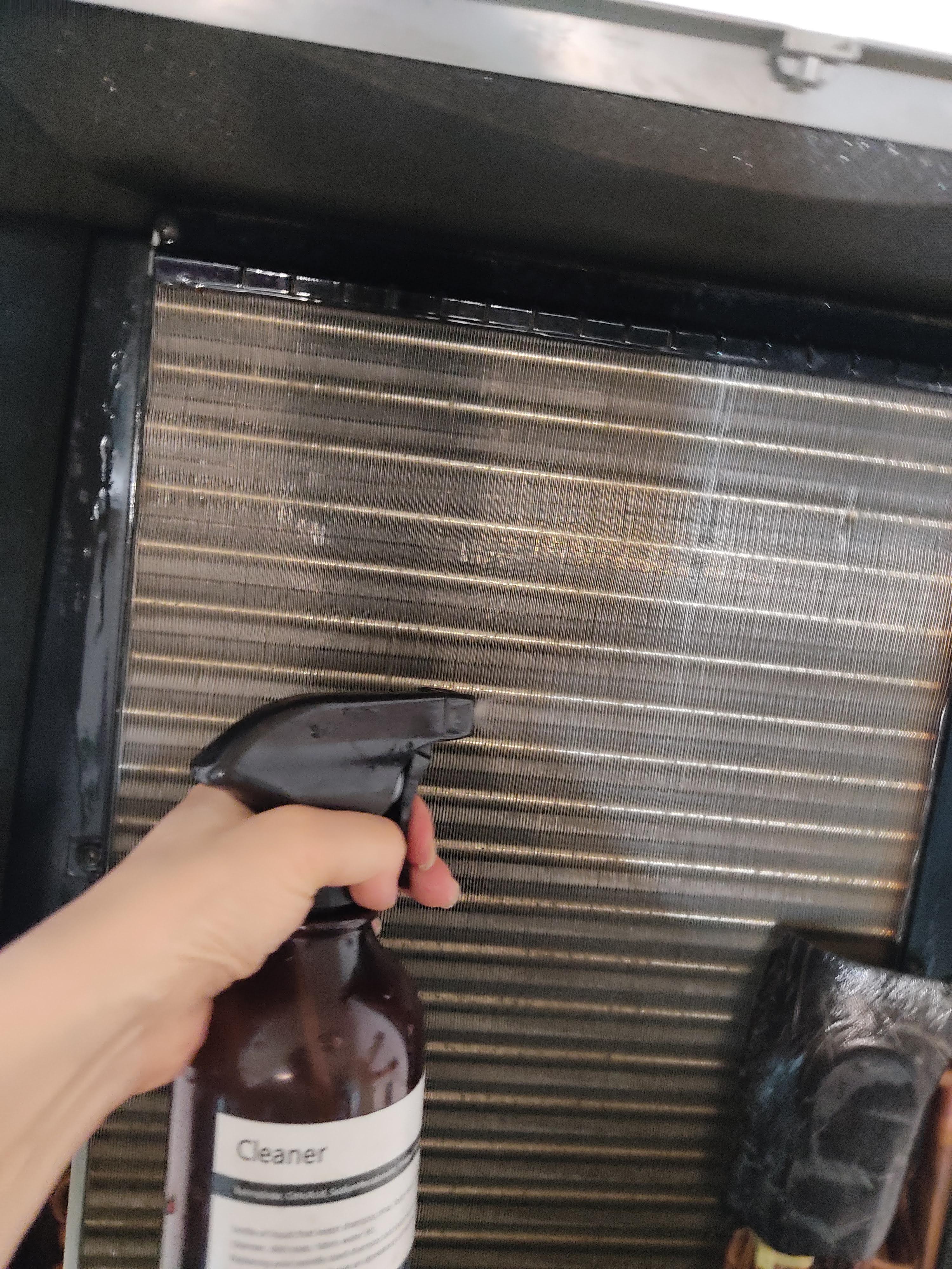 에어컨 청소 업체에선 업체에서 사용하는 세제를 냉각핀에 뿌려주고 분사기로 다시 한번 씻어내는데