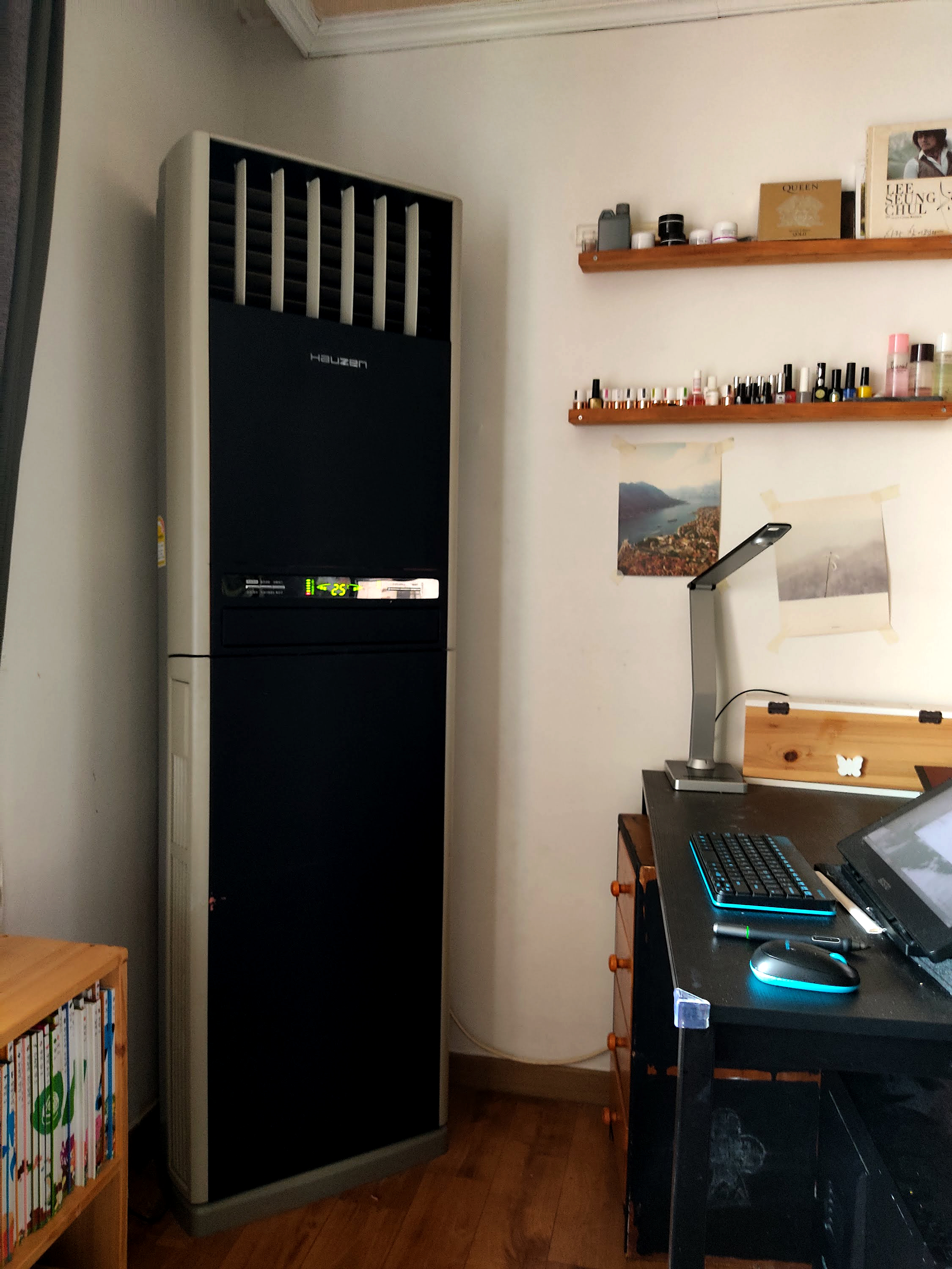 지금 제가 앉아 있는 책상 바로 뒤에는 10년 정도 된 에어컨이 있답니다.