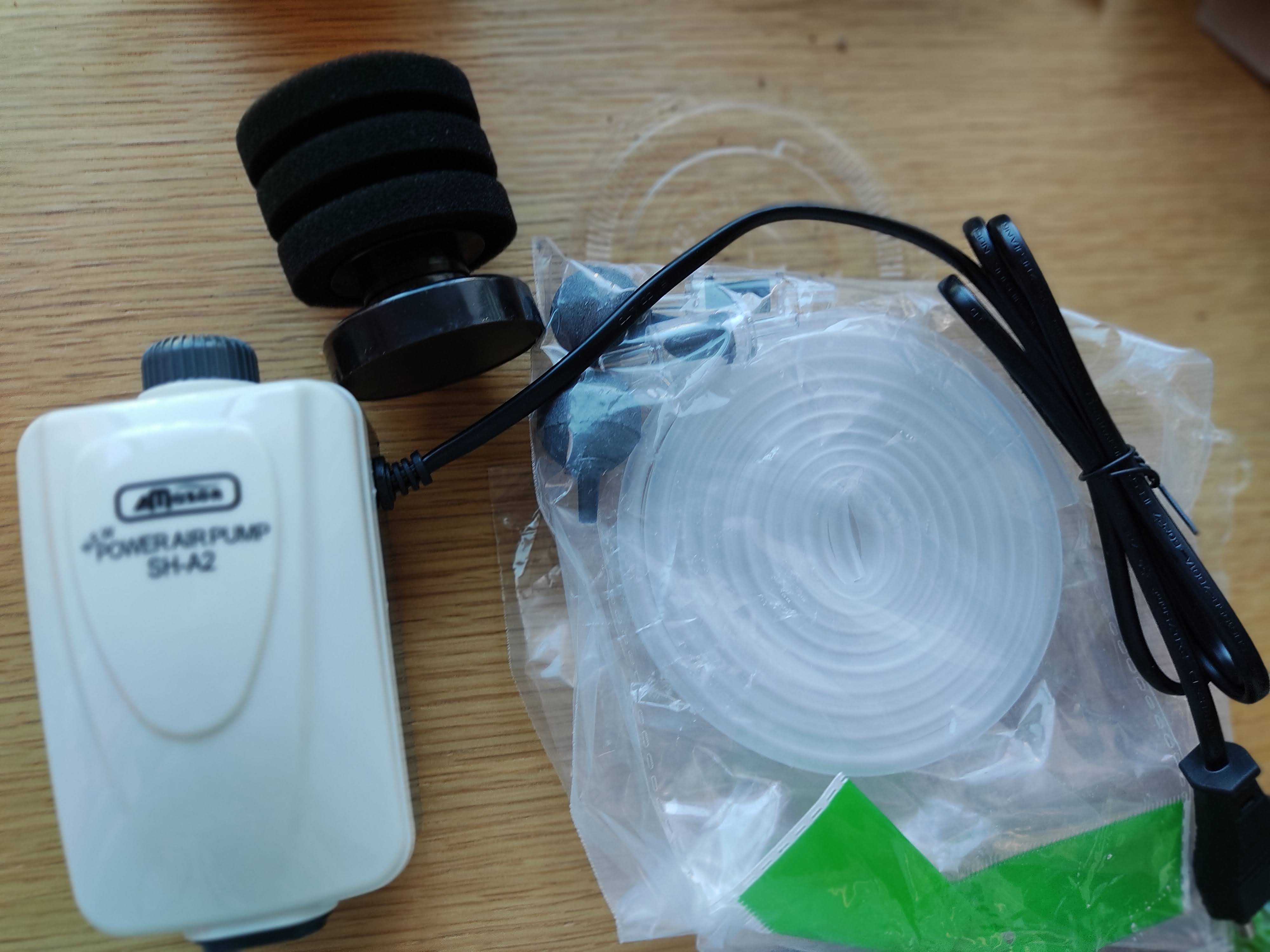 공기주입기와 여과기가 때 마침 도착했습니다.