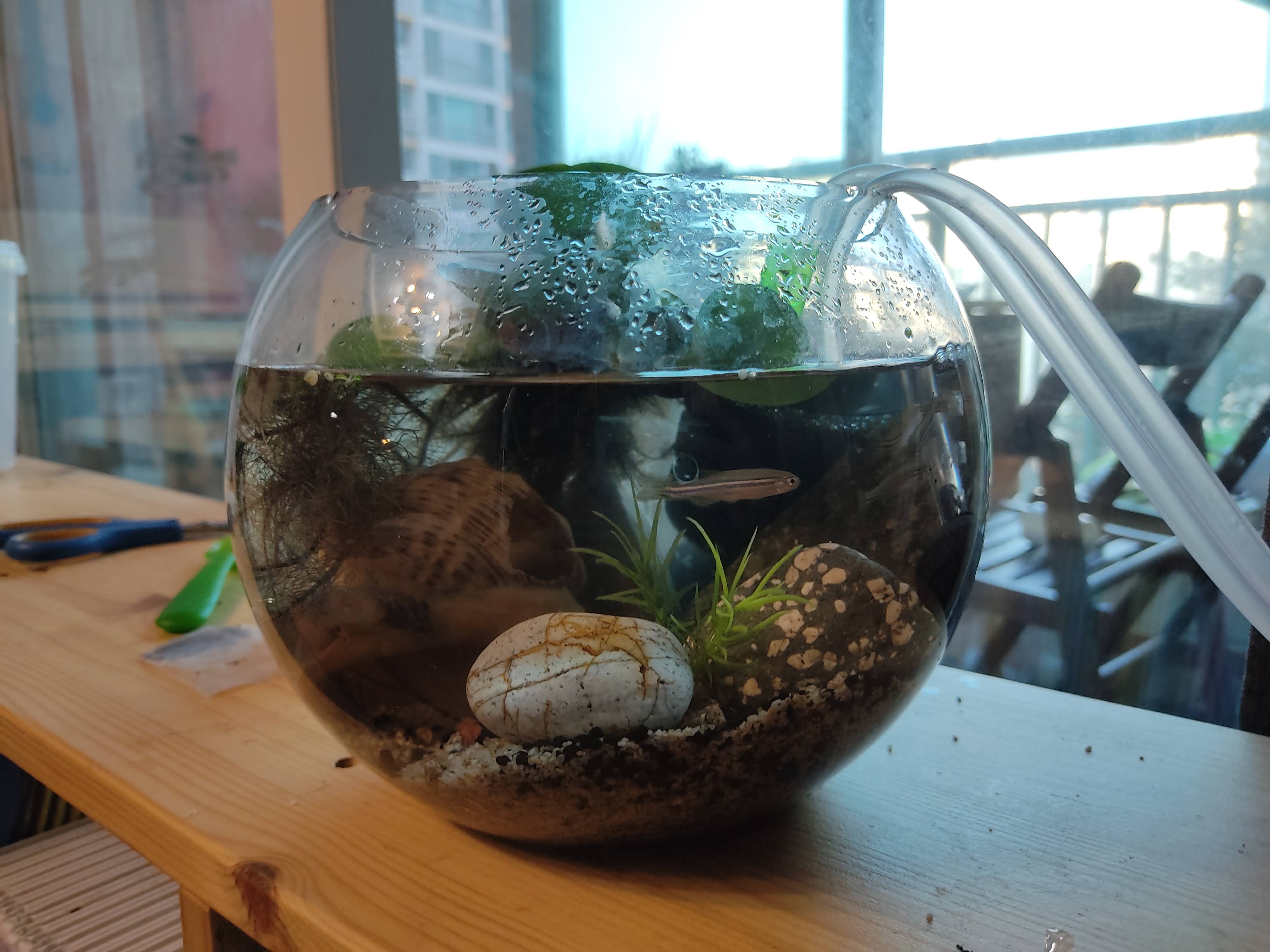 작은 돌과 처음 제브리다니오와 함께 왔던 인조 수초를 배치해줍니다.