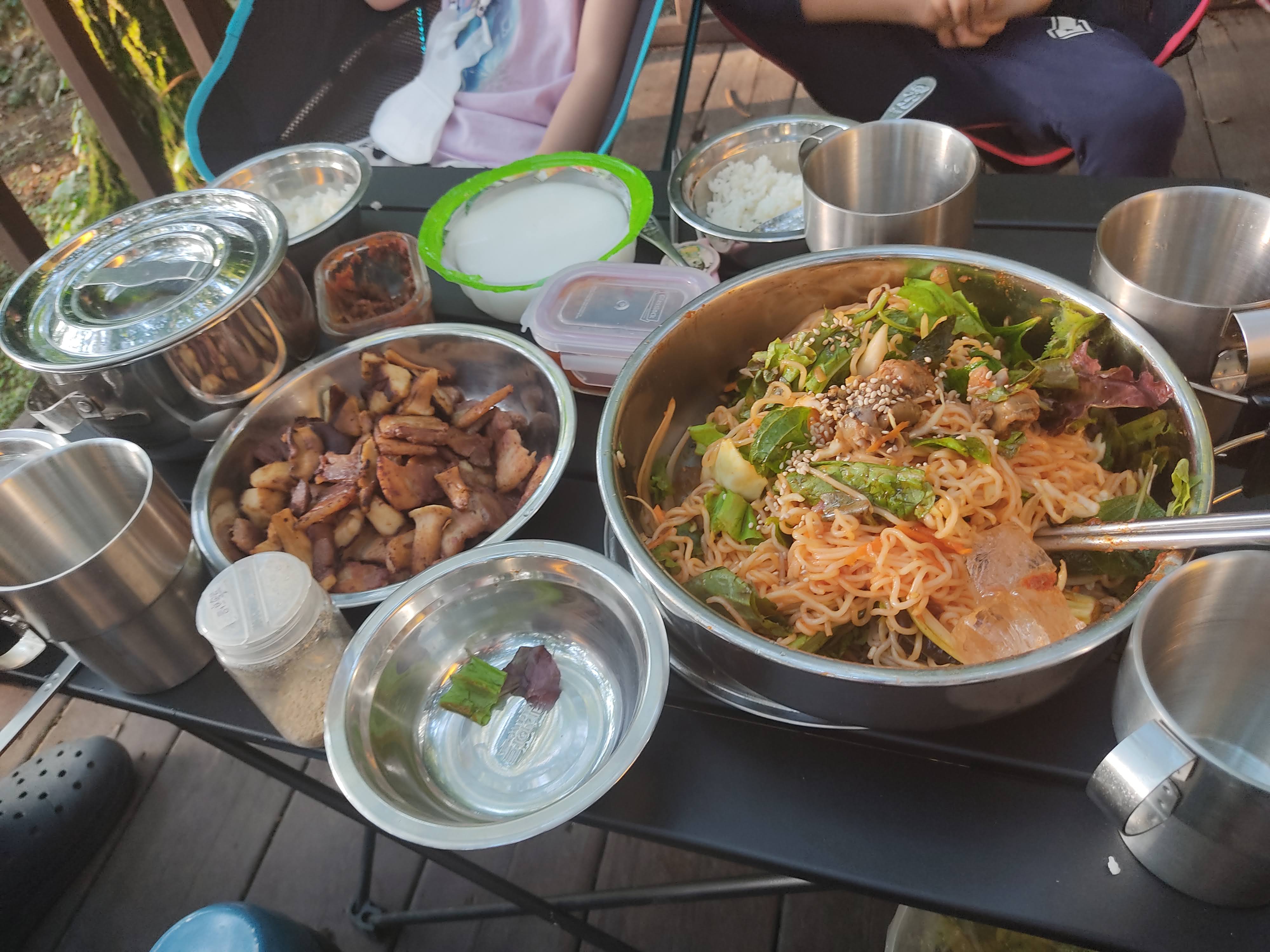 즐거운 캠핑 길 근데 1박이 아닌 2박이라면? 밥... 어쩌죠?? 승용차에 식구도 많아 짐도 많은데 햇반! 너 너무 자리 많이 차지하는 거 아니니? 코펠에 구이 바다, 그리들 아! 밥솥도 챙겨야 하네..
