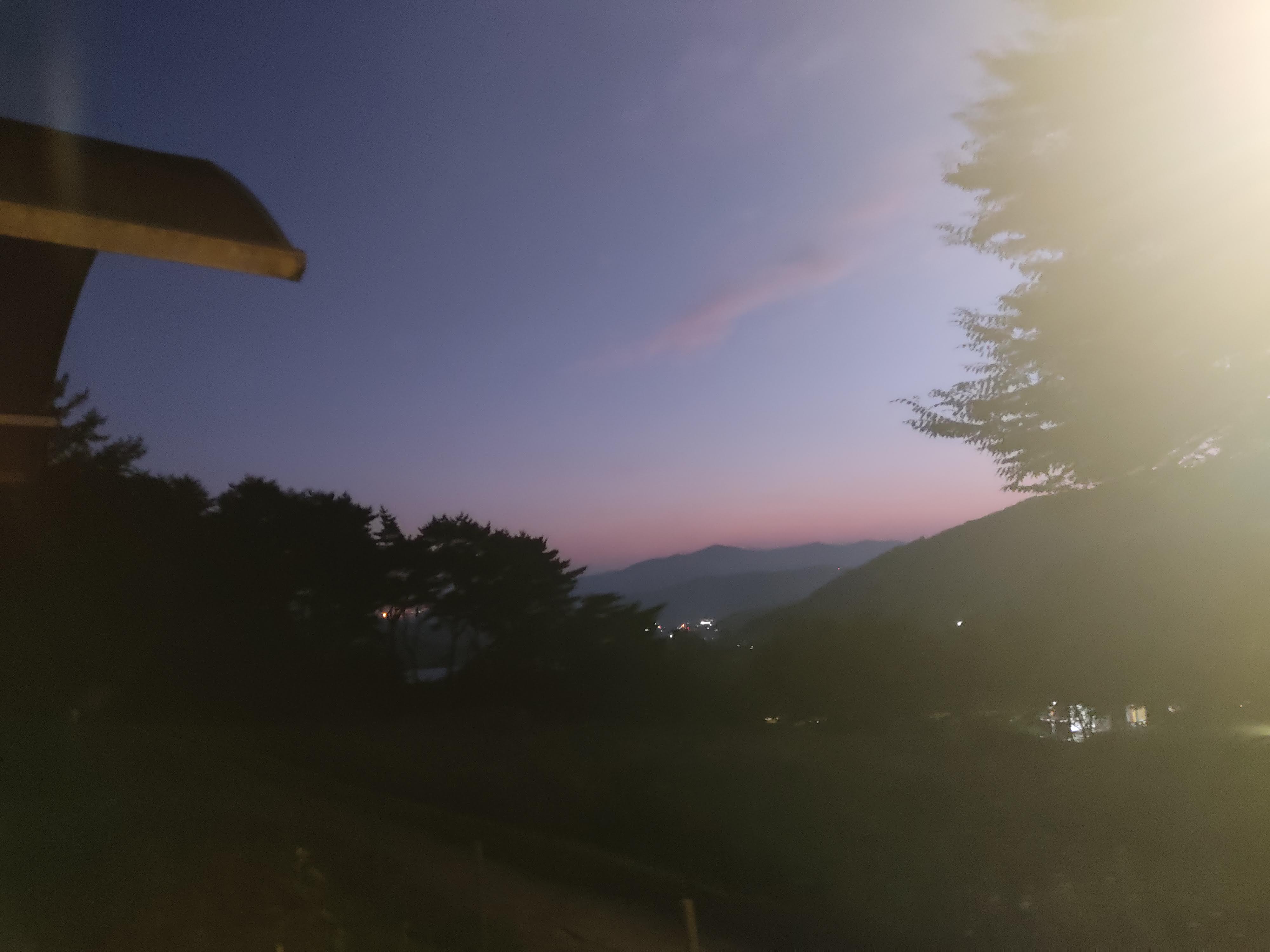 저녁을 먹다 보니 하늘이 주황색에서 보라색으로 변합니다.