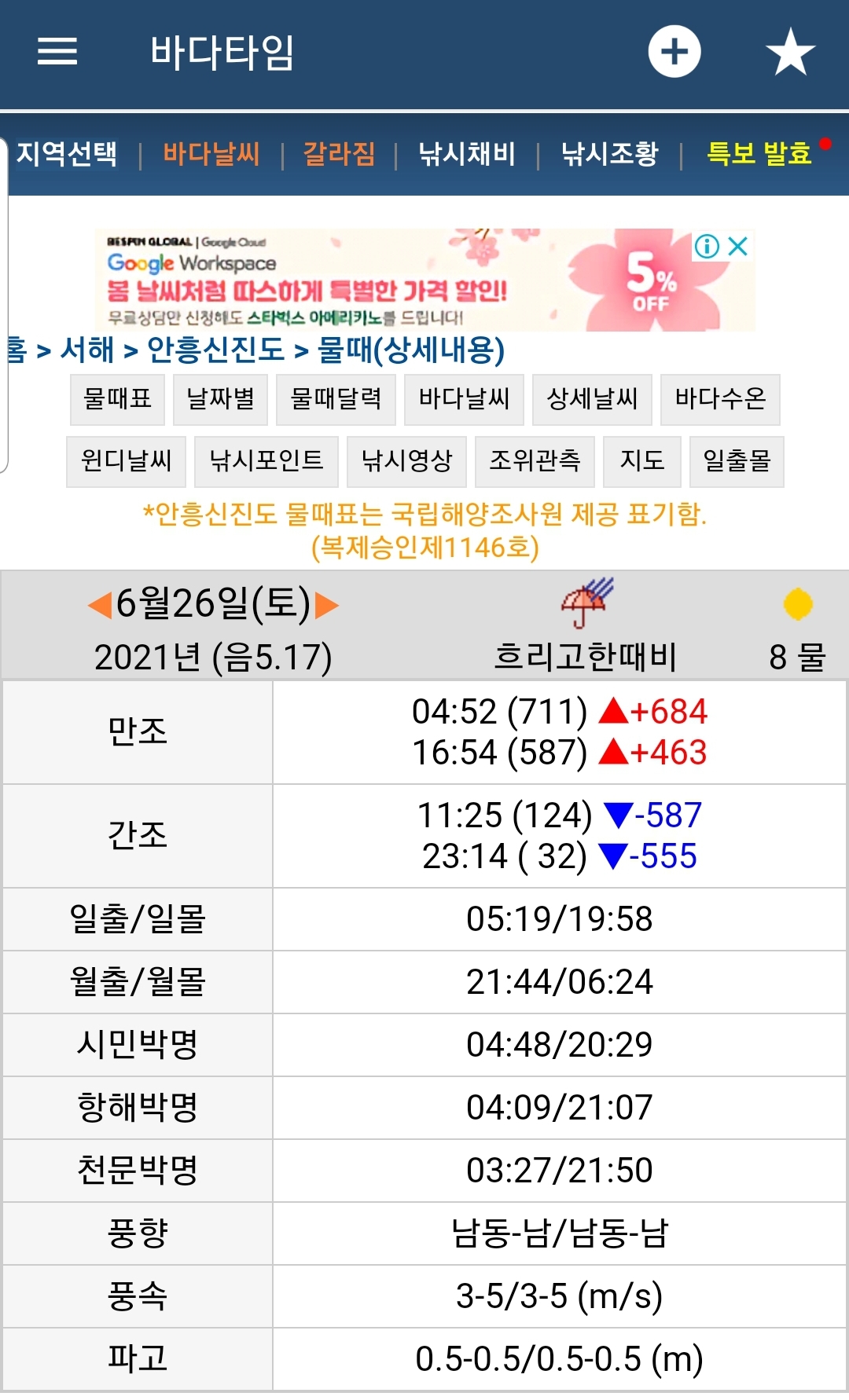 가장 먼저 확인할 건 간조시간입니다. 저는 어플(바다 타임 링크)을 통해 간조시간을 확인하였는데요 간조시간 앞뒤로 2시간이 갯벌 체험을 할 수 있는 시간입니다.