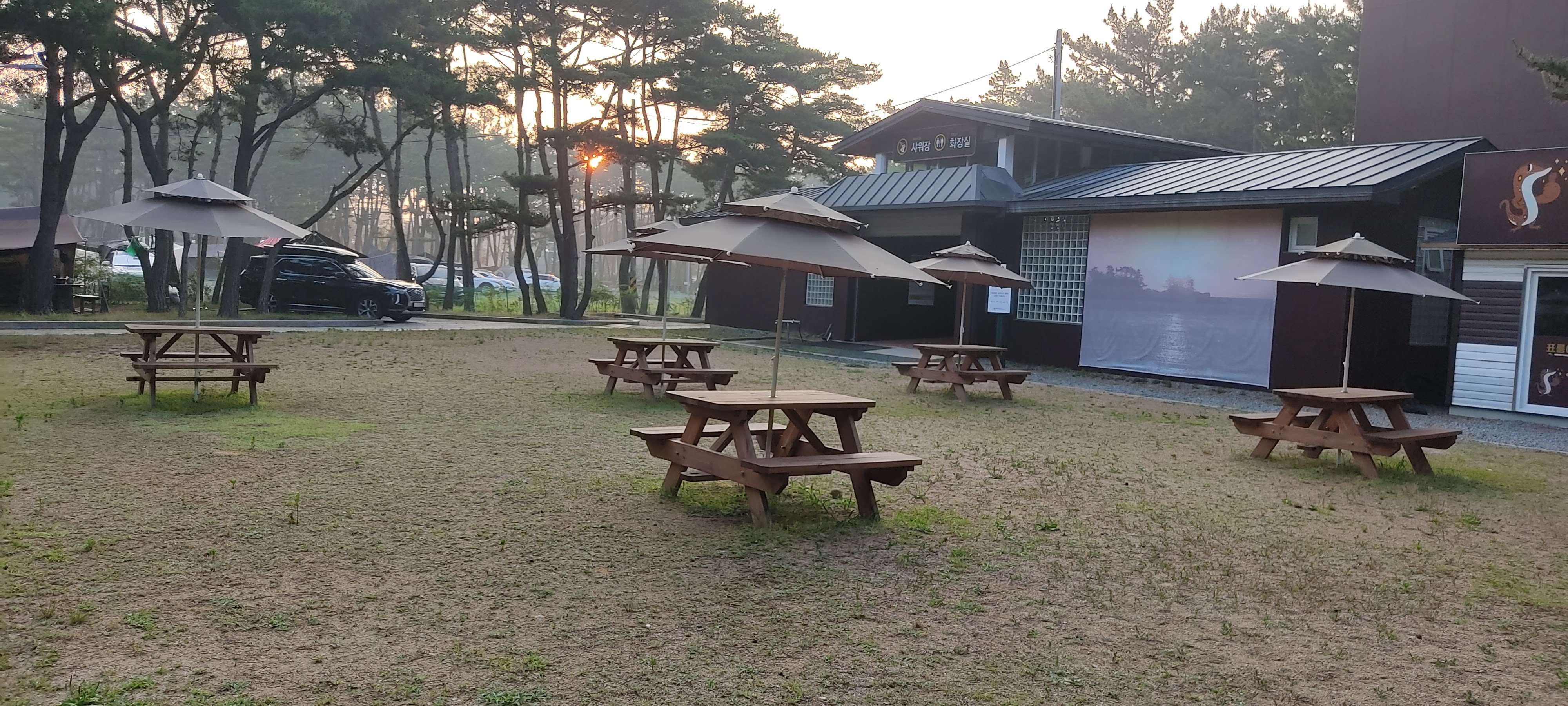 각 사이트마다 야외 식탁이 있어 캠핑 테이블이 없으신 분들도 유용하게 쓰실 수 있습니다.