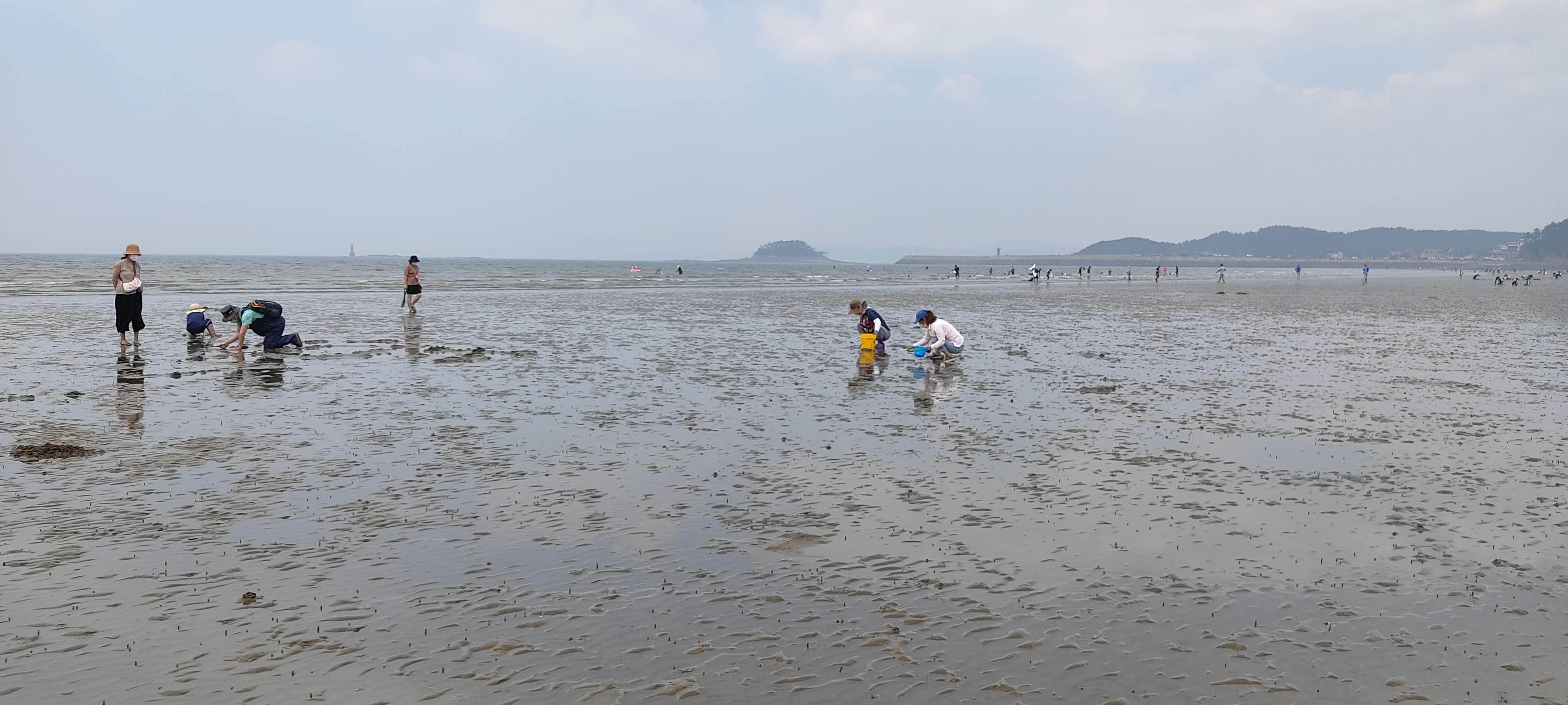 - 바다는 모래보다 얇은 뻘이어서 물은 탁하나 수온은 따듯한 편이에요.