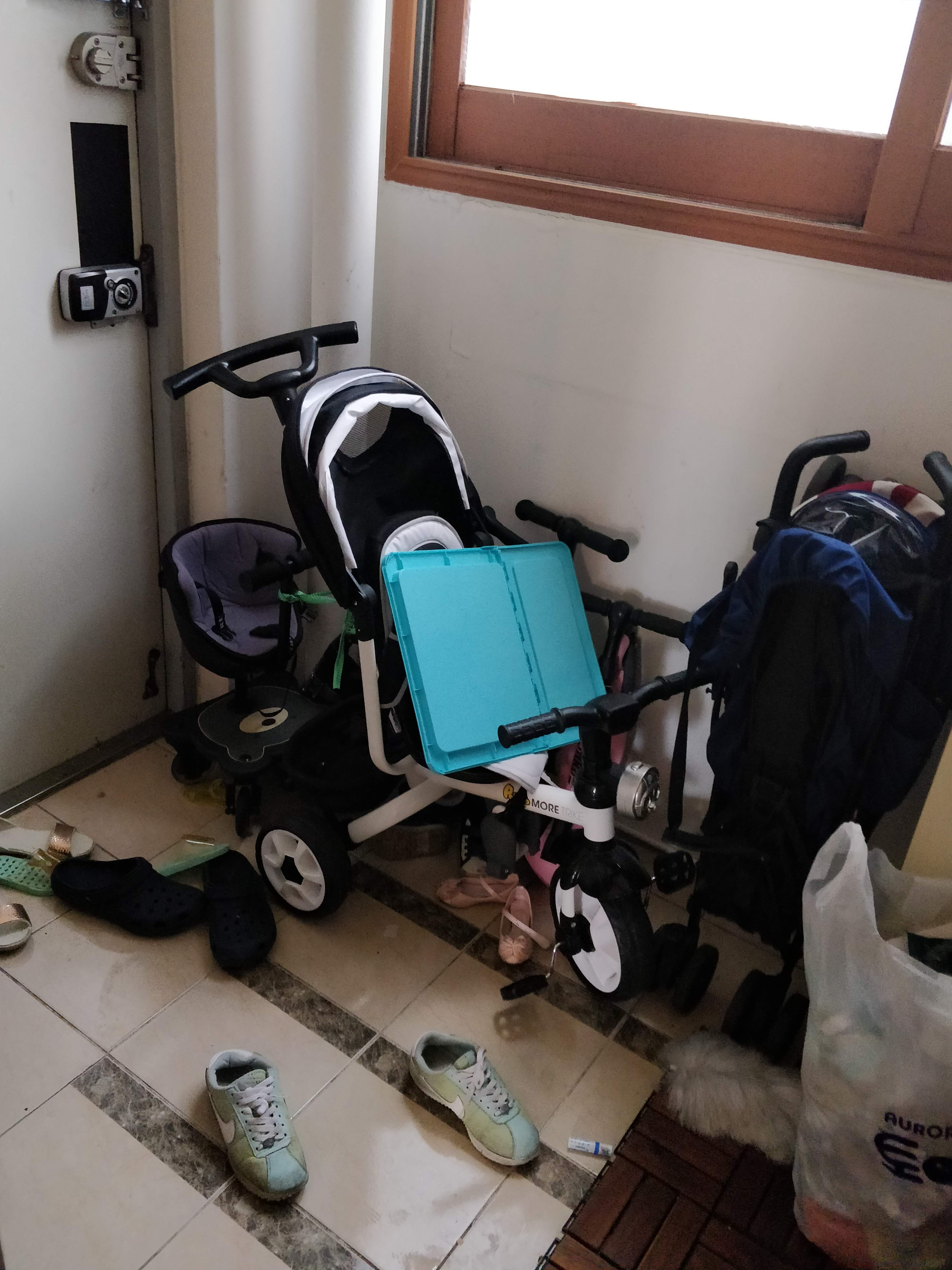 피곤한 몸을 이끌고 집에 돌아와 처음 맞는 현관! 윽.... 지저분해~ 더 피곤해진다... 아이 있는 집! 디럭스형 유모차 절충형 유모차 자전거 킥보드.. 아.. 현관이 방만해졌으면 좋겠다. 저만 그런