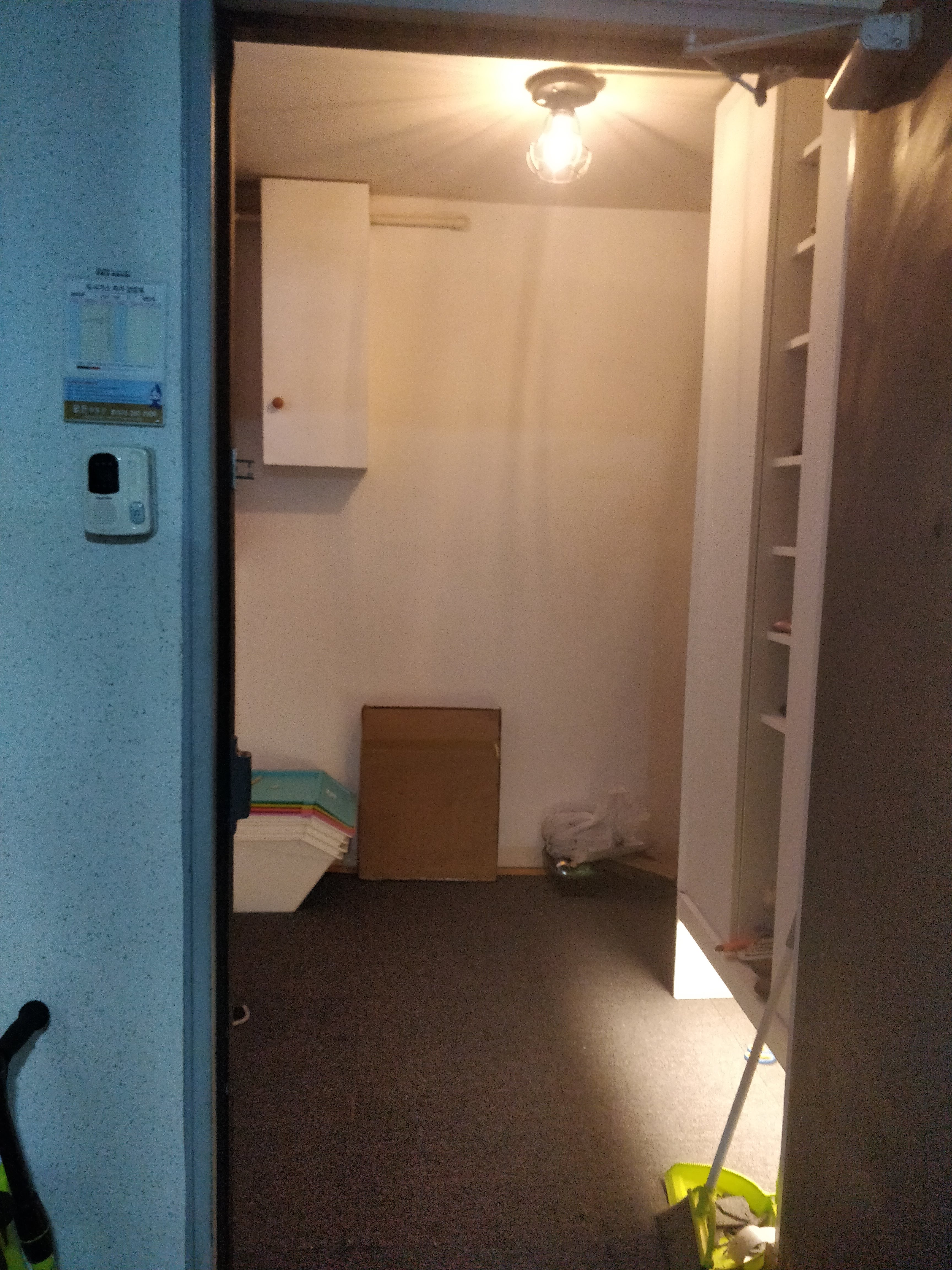 저번 타일 카페트 작업으로 거의 완성된 현관 저만 단조로워 보이나요. 벽이 허전한 느낌입니다.