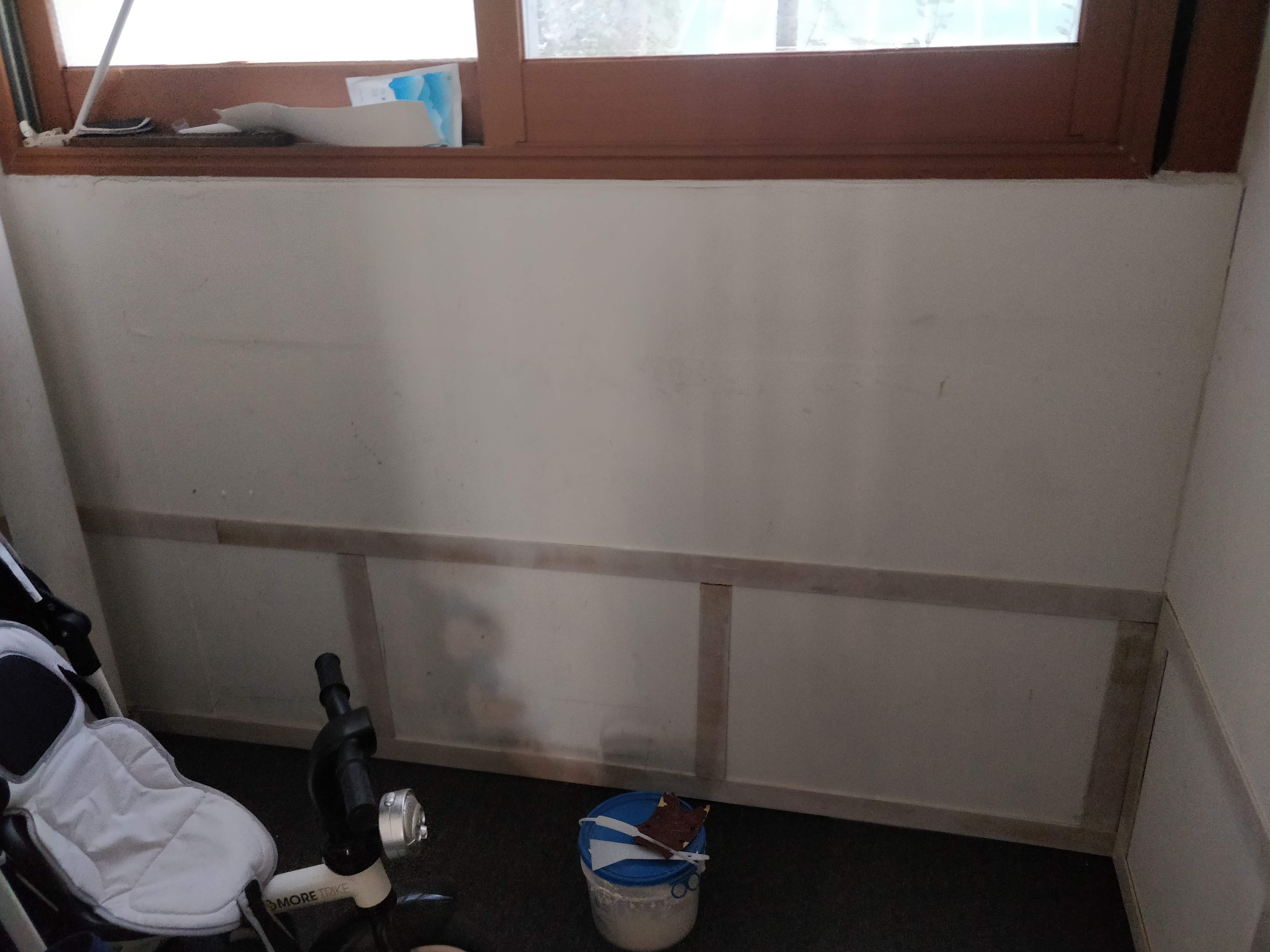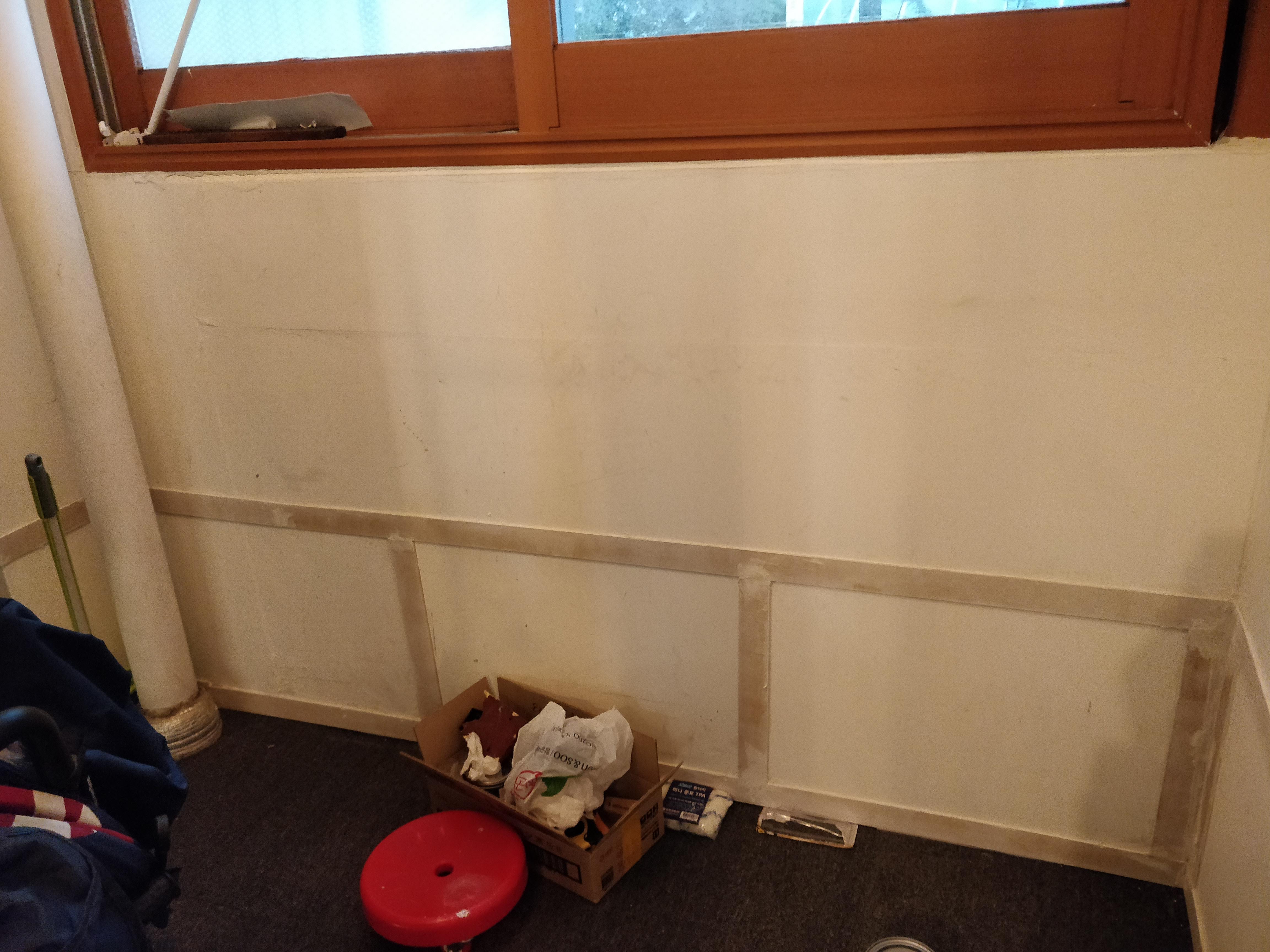 저는 기존 붙박이장 철거로 나온 폐자제를 활용하여 돈 한 푼 안 들이고 격자형 웨인스코팅을 시도하겠습니다.