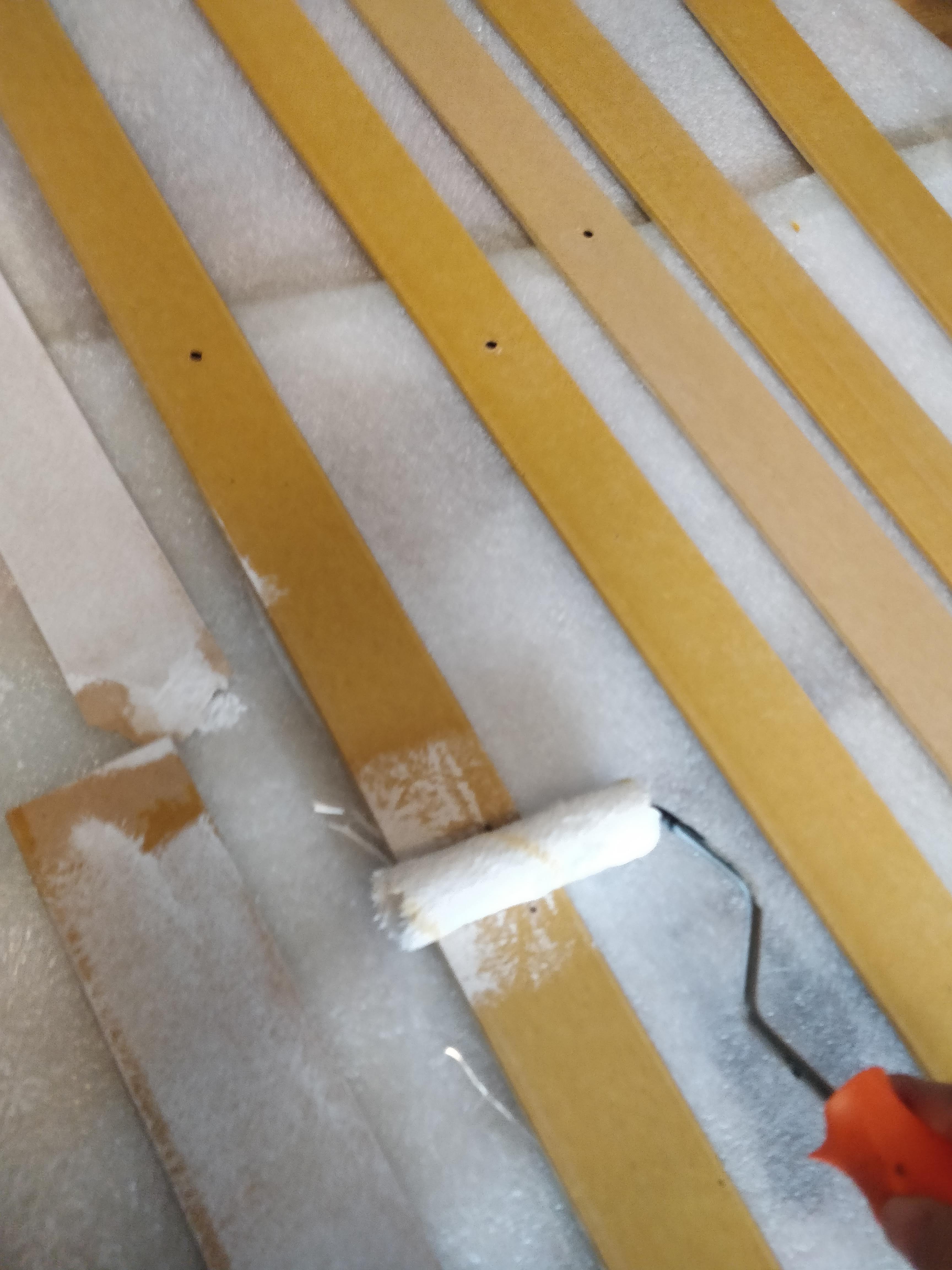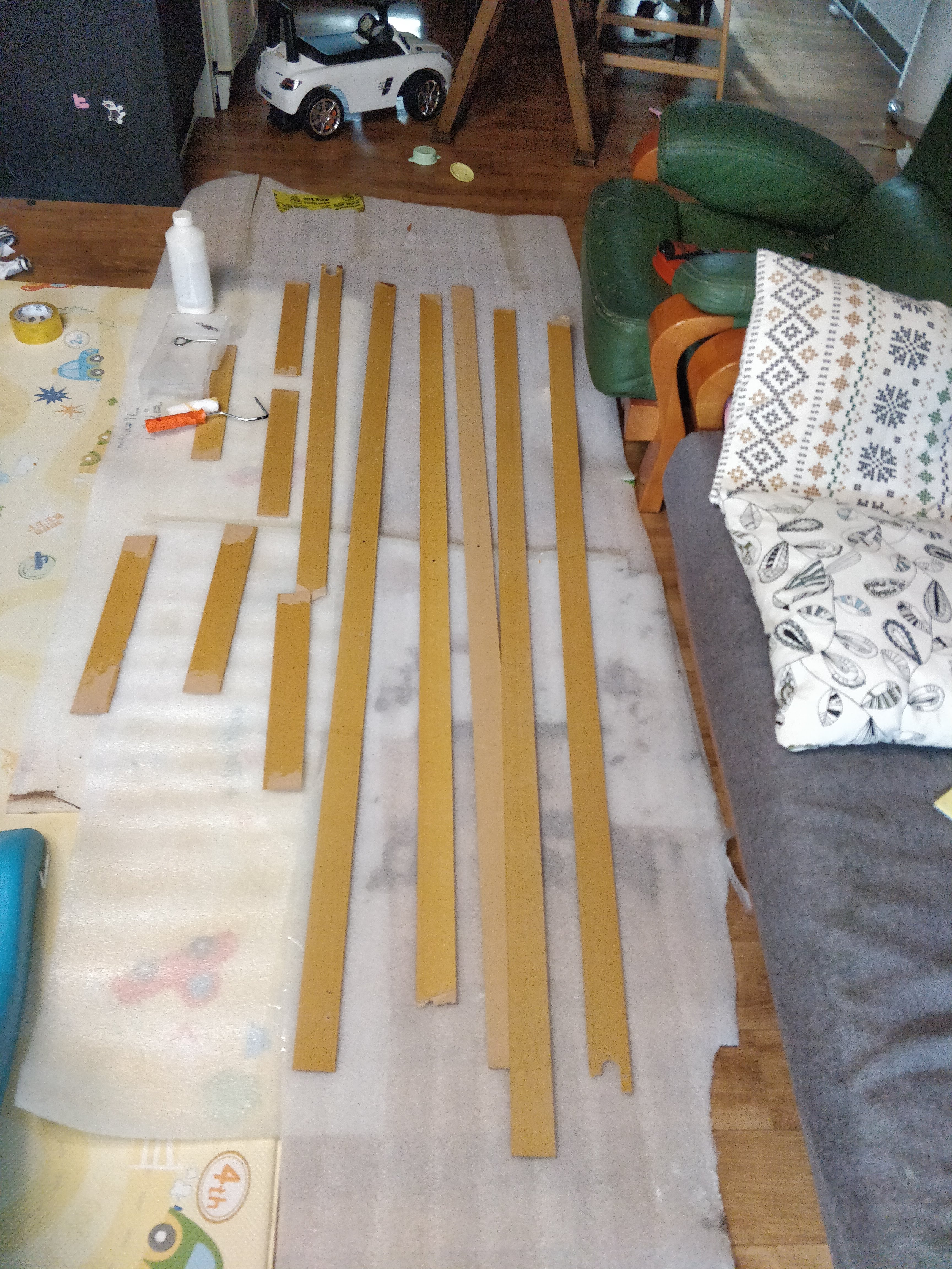 3개의 문짝으로 이 만큼의 재료가 나오네요!! 벽면에 붙이기 전에 젯소를 2회 도장해 주었습니다.