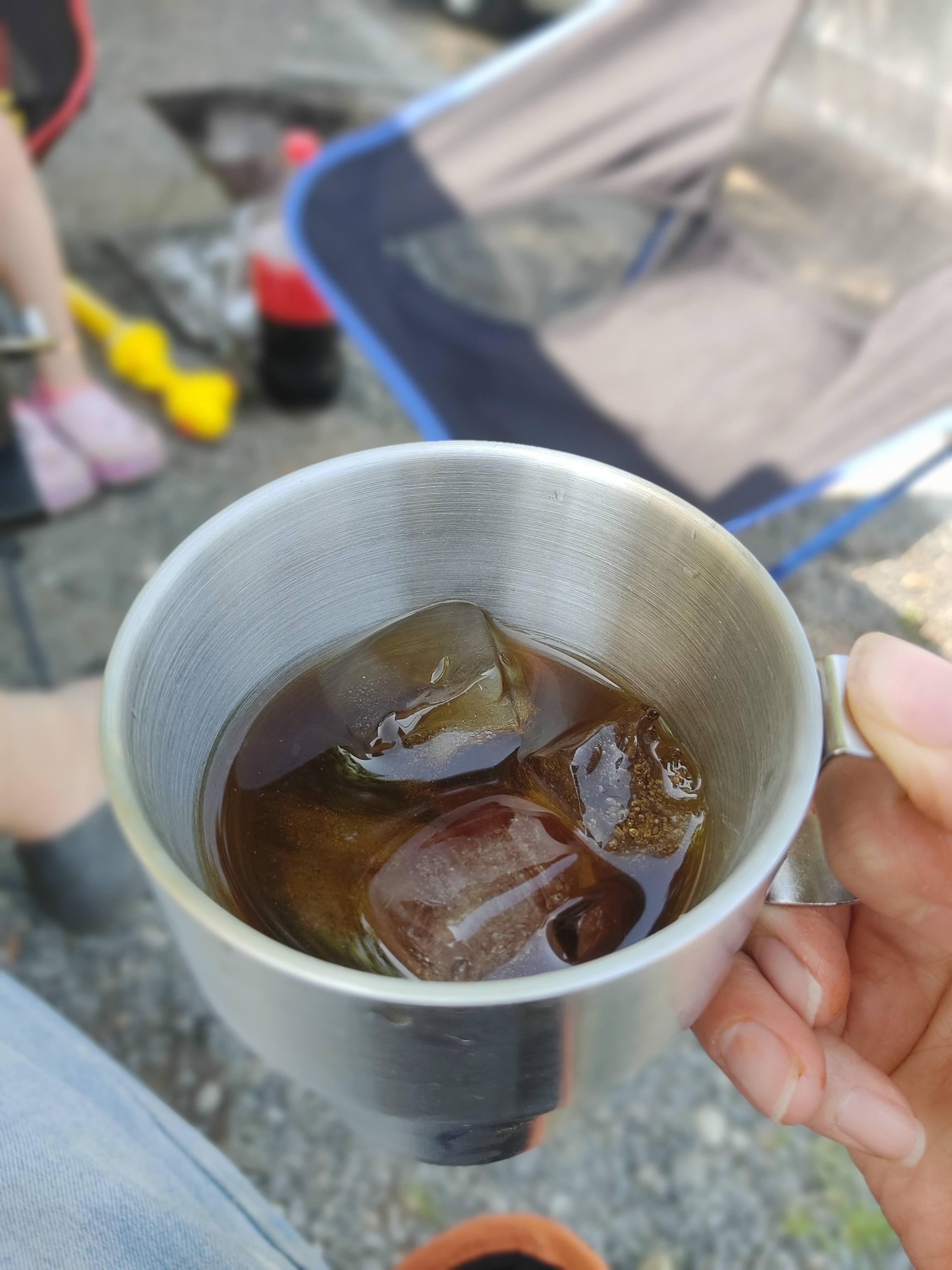 제가 가장 많이 사용하는 건 더치커피입니다. 드립커피와 모카포트 모두 뜨거운 물로 커피를 캠핑장에서 바로 추출하는 방법이죠. 겨울이나 쌀쌀한 날에는 좋을지 모르나 요즘 같은 더위엔 불을 켜는 게 얼마나 싫은지 공감하실 거예요. 더치커피는 찬물 or상온의 물로 커피를 천천히 추출하는 방법으로 부드럽고 쓴맛이 덜해서 커피 초심자들도 부담 없이 드시는 커피지요. 요즘은 직접 내린 더치커피를 카페에서나 인터넷으로 많이 판매하기 때문에 쉽게 캠핑장에서 이용할 수 있어요. 더치커피 원액을 필요한 만큼 작은 병에 담아 가서 얼음물과 함께 마시면 여름에 그만한 피서가 없습니다.