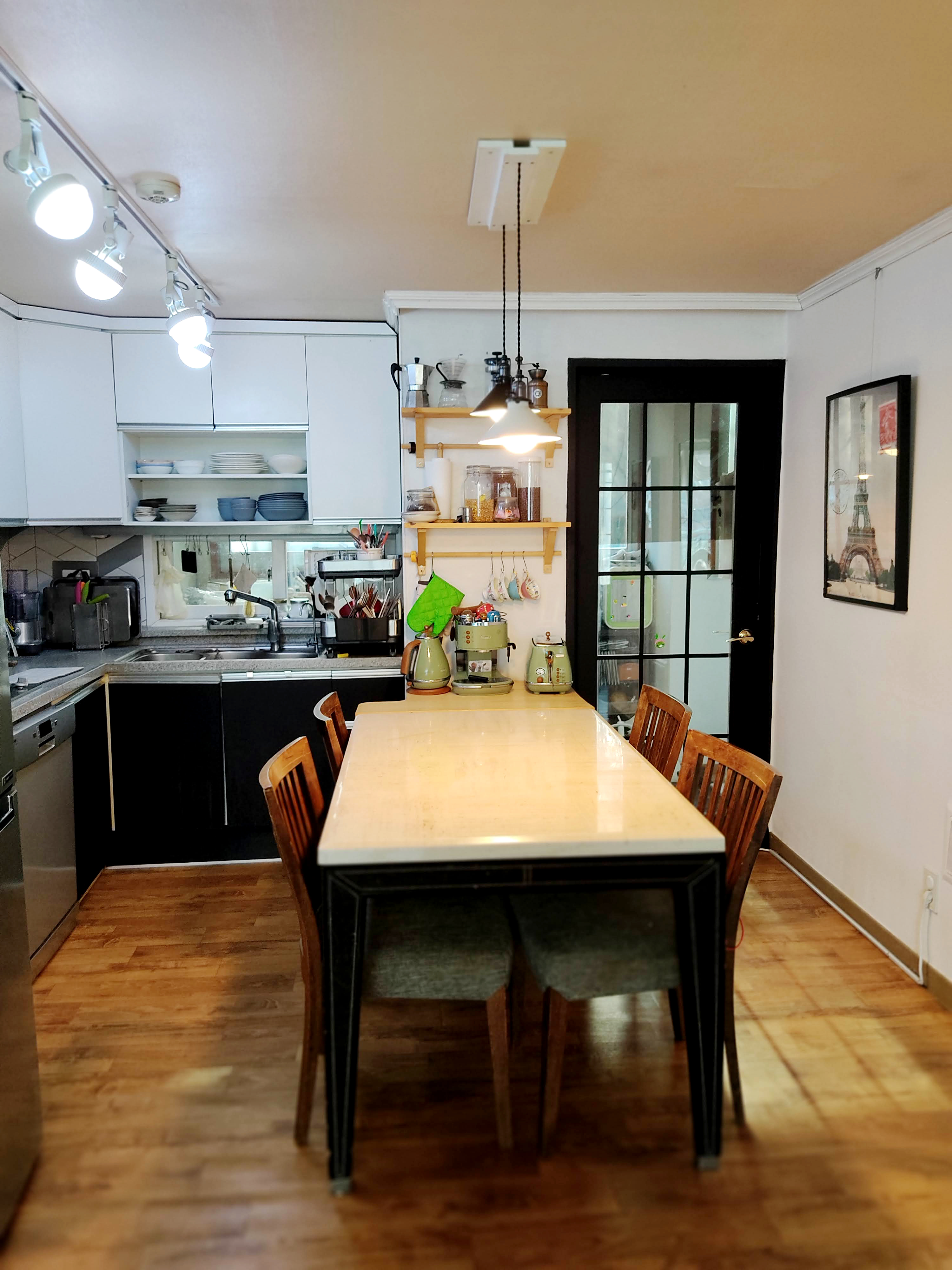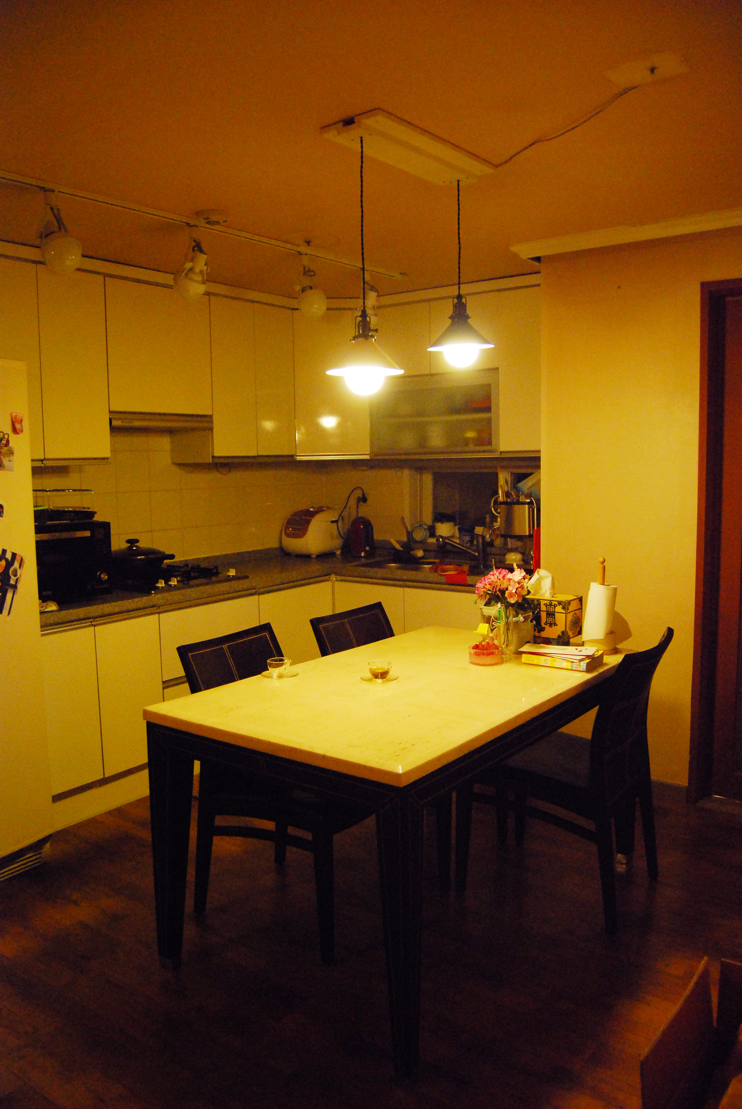 여기가 식탁 자리야라는 듯이 기다란 조명이 있었는데 그 자리에 식탁을 두면